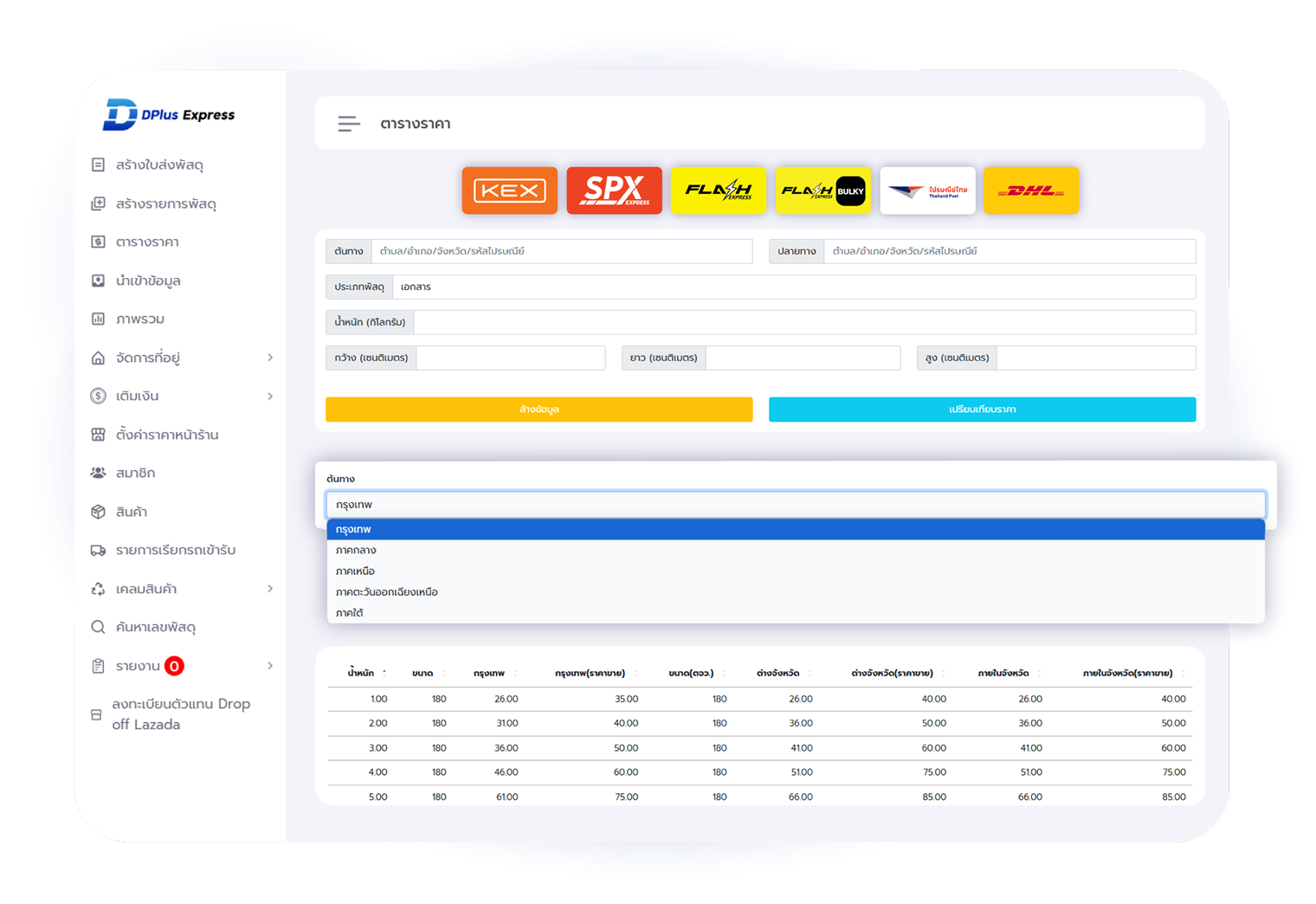 ระบบสามารถตั้งค่าราคาหน้าร้านได้ ทุกขนส่งโดยร้านเป็นคนกำหนดกำไรเองให้ลูกค้าที่มาส่งพัสดุหน้าร้าน